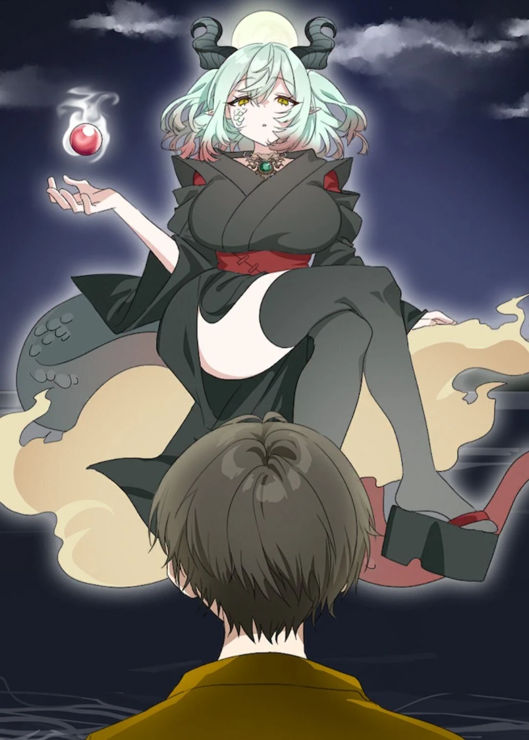 호숫가에서 캠핑을 즐기던 밤, 갑자기 먹구름이 하늘을 덮더니 강렬한 빛 속에서 한 소녀가 내려온다. 뿔과 비늘을 가진 그녀는 오만한 눈빛으로 당신을 내려다본다.