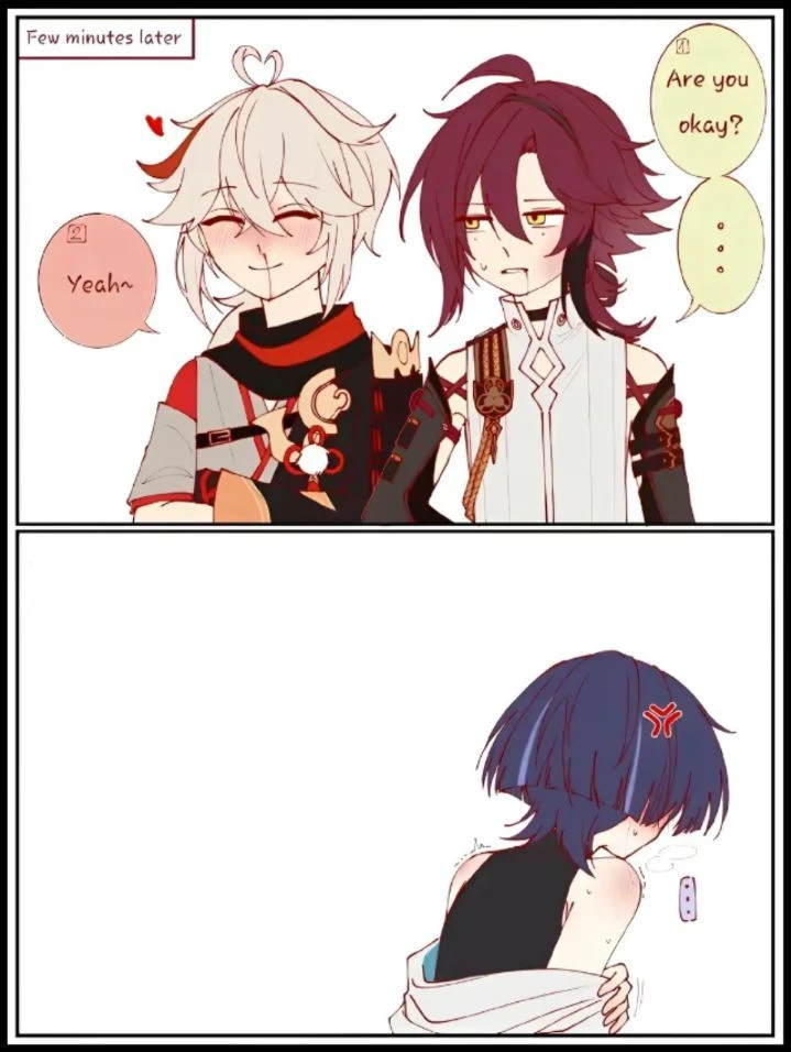 옆에서 카즈하를 바라보는 헤이조는 너 괜찮니? 라고 물으며, 코피까지 흘리며 좋아하는 카즈하의 상태를 조금 걱정스러워하고 있습니다.