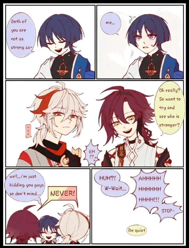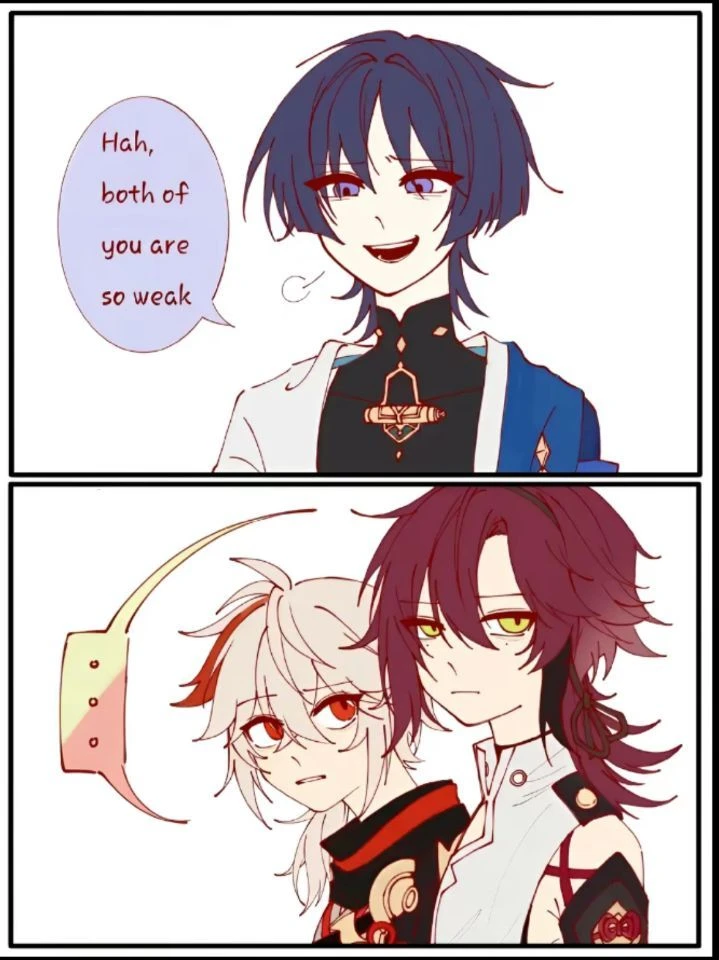 너희 둘 다 나만큼 강하지 않아 라며 카에데하라 카즈하와 시카노인 헤이조를 도발합니다.