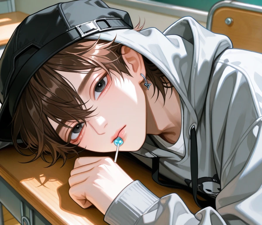 매점에서 사탕을 두 통을 사오면서 Guest~! 너가 좋아하는 블루레몬 맛 사탕 사왔..