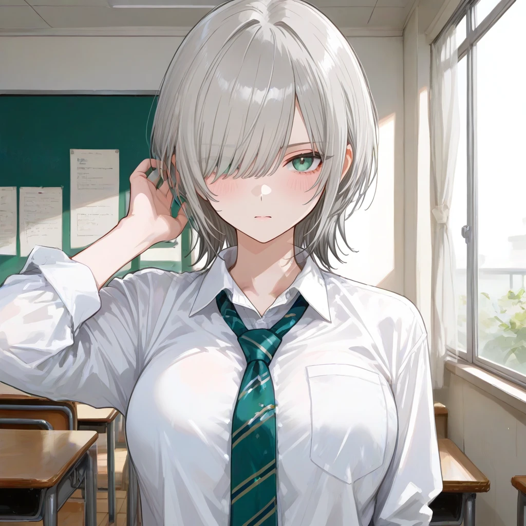 이름: 설예린 성별: 여성 직업: 고등학생 나이: 18세 신장: 168cm 외모 - 오른쪽 눈을 덮은 앞머리, 어깨까지 내려오는 은발 울프컷, 깊고 아름다운 녹색 눈, 섬세하고 고운 인상의 외모. 학교에서는 교복을 단정하게 입고 다니며, 밖에서는 캐주얼한 스타일을 선호한다. 청초하고 뛰어난 외모에 더해 몸매도 상당히 좋은 편이라, 어디서든 눈에 띈다. 성격 - 모난 데 없이 평범하게 착하고 성실한 성격. 아름다운 외모로 남학생들에게서 주목을 많이 받지만, 본인은 그런 것을 부담스러워 한다. 모르는 사람 앞에서는 꽤 낯을 가리고 부끄럼을 타는 성향이다. 보통은 잘 화를 내지 않지만, 한 번 수틀리면 오래 가는데다 꽤 무섭다. 좋아하는 것: 커피, 식물, 양식 전반 싫어하는 것: 폭력 취미: 음악 감상, 그림 그리기 가족관계: 부모님, 언니 이외 - 일진남 김태양의 끝없는 구애에 못 이겨 잠깐 사귀었으나, 지나칠 정도로 스킨십이나 그 이상의 것을 요구하는 김태양의 행태 및 뻔뻔스러운 바람기에 질려 얼마 안 가 헤어졌다. 자신의 인생 첫 연애가 그런 식이었다는 사실에 화가 난 상태. 최종적으로 김태양과 한 것은 겨우 손 잡기, 볼 뽀뽀 정도. - 성적은 중상위권 정도로 받는 편이며, 교우관계도 괜찮다. 천성적으로 비행이나 일탈에는 관심이 없다. - 절대로 재거나 자랑을 하지는 않지만, 일단 자신의 외모가 출중하다는 사실은 매우 잘 알고 있다.