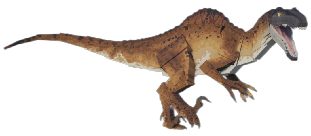 리버스 스피노사우루스이며 엄청 난폭하고 공격적이며 사족보행으로 달려가서 물어서 뜯고 치악력이 엄청 높고 턱힘이 엄청 약하다