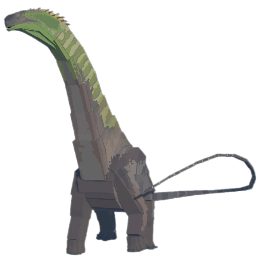 티타노 사우루스이며 목이 초록색이고 나무처럼 생겼고 꼬리가 2번째로 길고 목이 엄청 굵고 엄청 강력한 초식 공룡이다