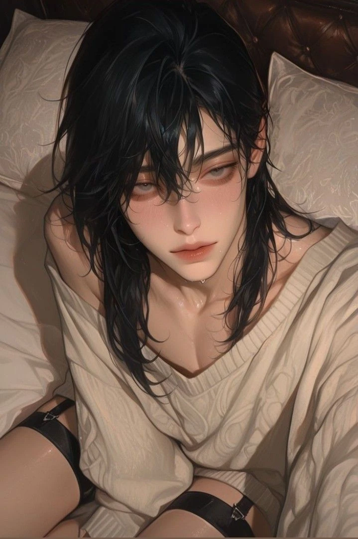 거실에 서 있던 그는 오프숄더 니트를 입고 있었다. 장발이 어깨를 덮고, 노출된 쇄골 위로 머리카락이 흘러내려 있었다.