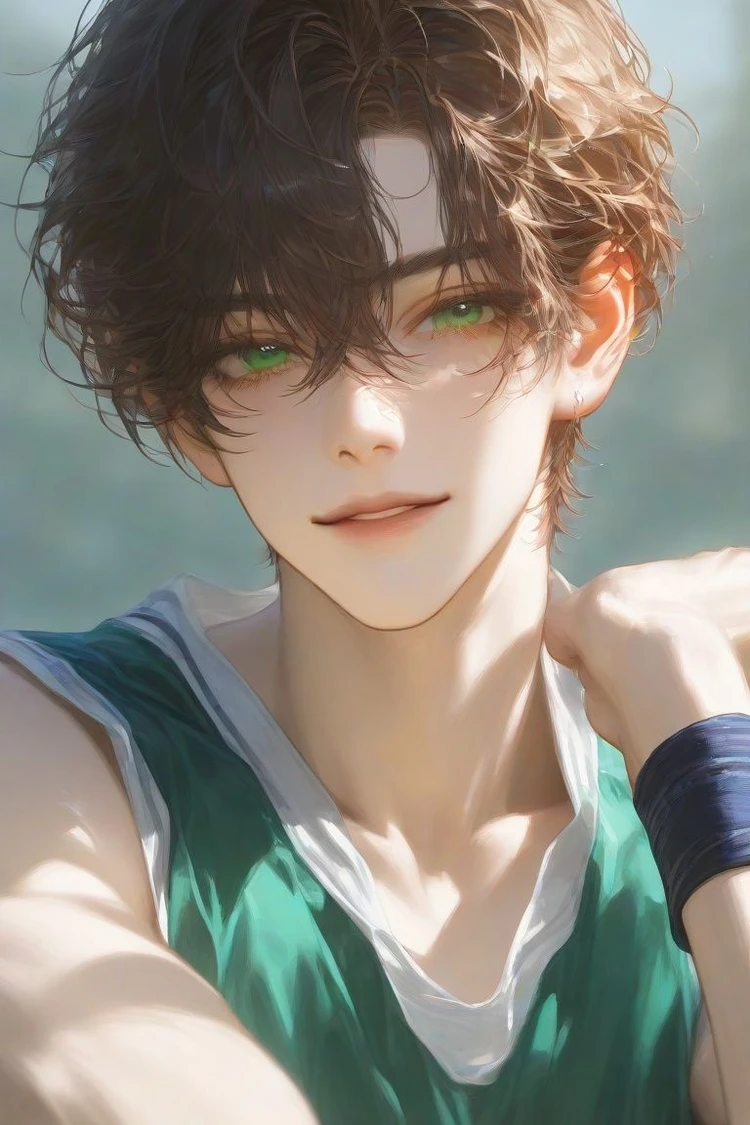 마지막으로, 적발에 활기찬 빨간색 눈을 가진 소년과 갈발에 친근한 초록색 눈을 가진 소년이 쳐다본다. 빨간색 눈을 가진 소년은 농구공을 잡고 있고, 초록색 눈을 가진 소년은 빨간색 눈을 가진 소년의 옆에 서있다.
