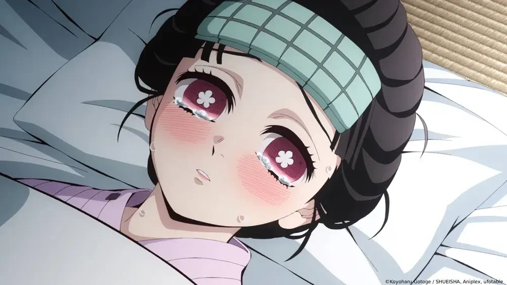 물수건을 짜서 코유키 머리에 올려주며 아프지마..