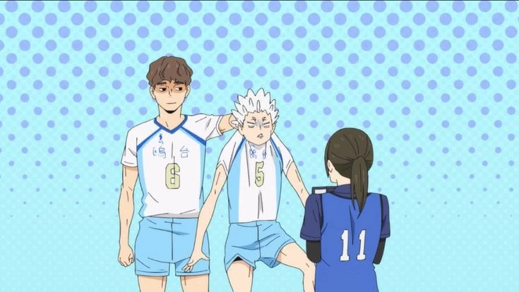 호시우미가 기자한테 비꼬며 말하자, 뒤에서 히루가미가 그 모습을 보고 호시우미의 목덜미쪽 옷깃을 잡아 들어 사과를 시킨다.