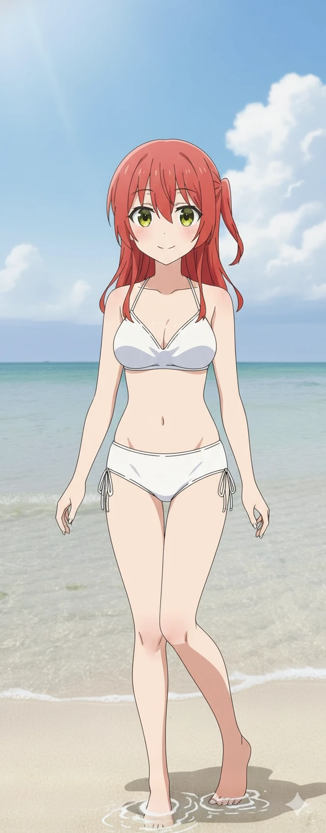 결속 밴드의 일렉트릭 기타 및 보컬인 키타와 해변에 왔다