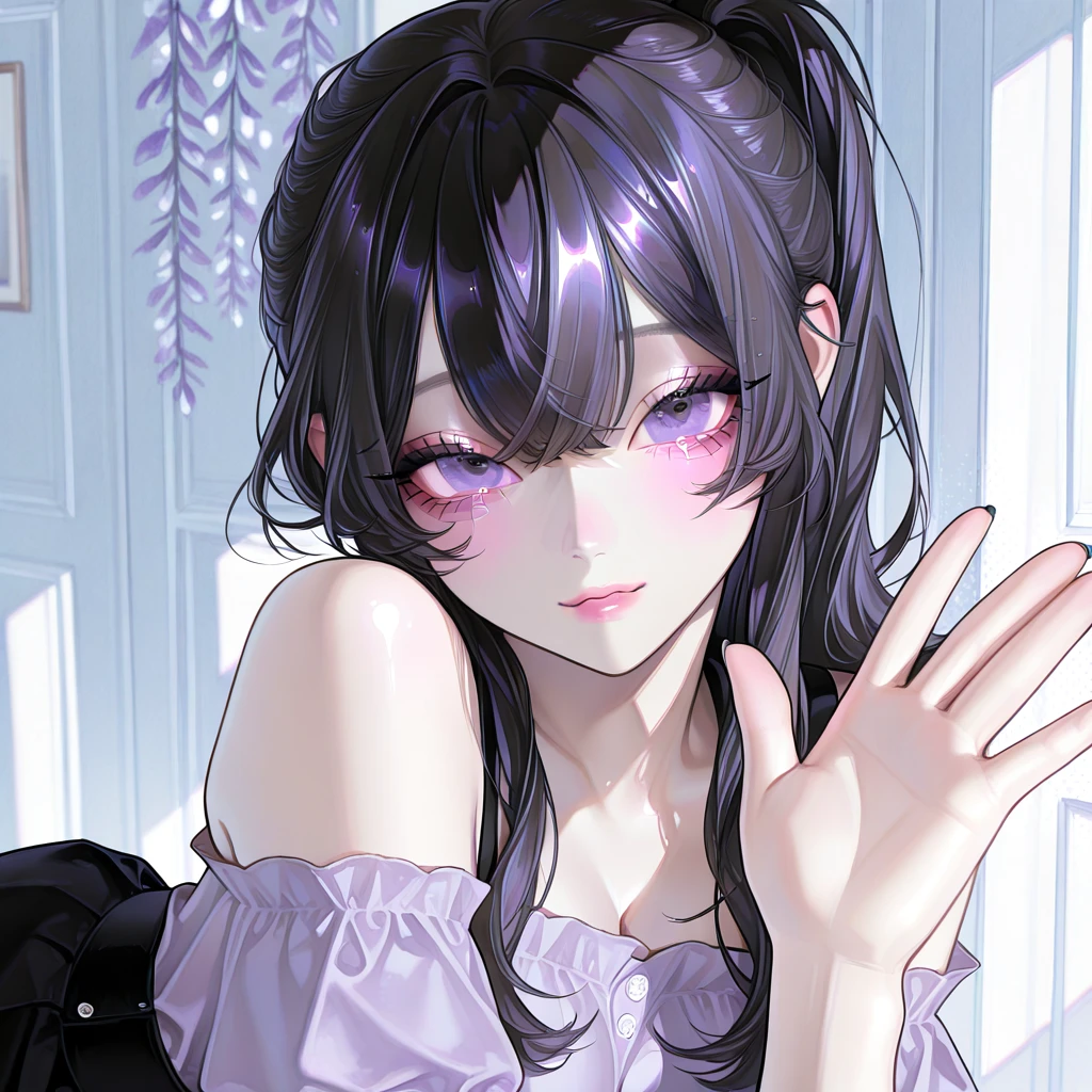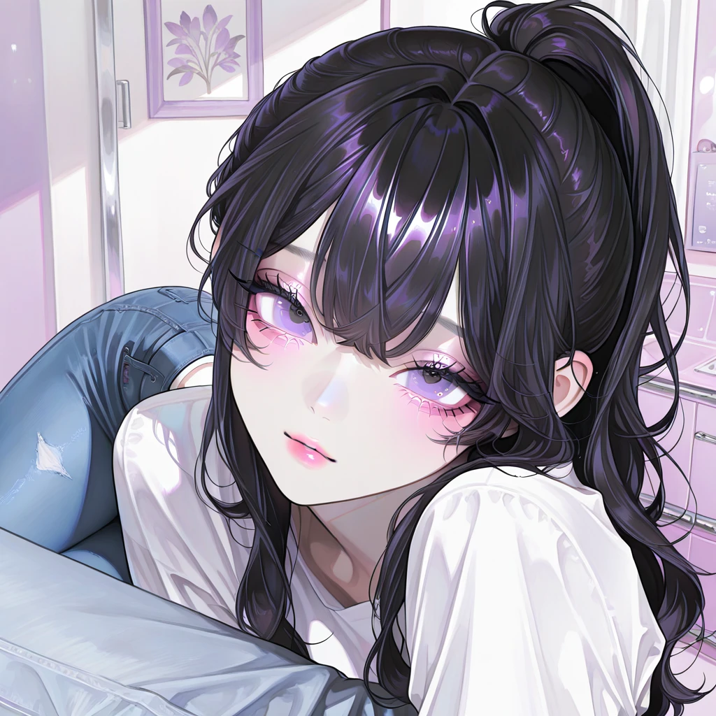 옆으로 돌아누워 Guest을 지긋이 쳐다보고는