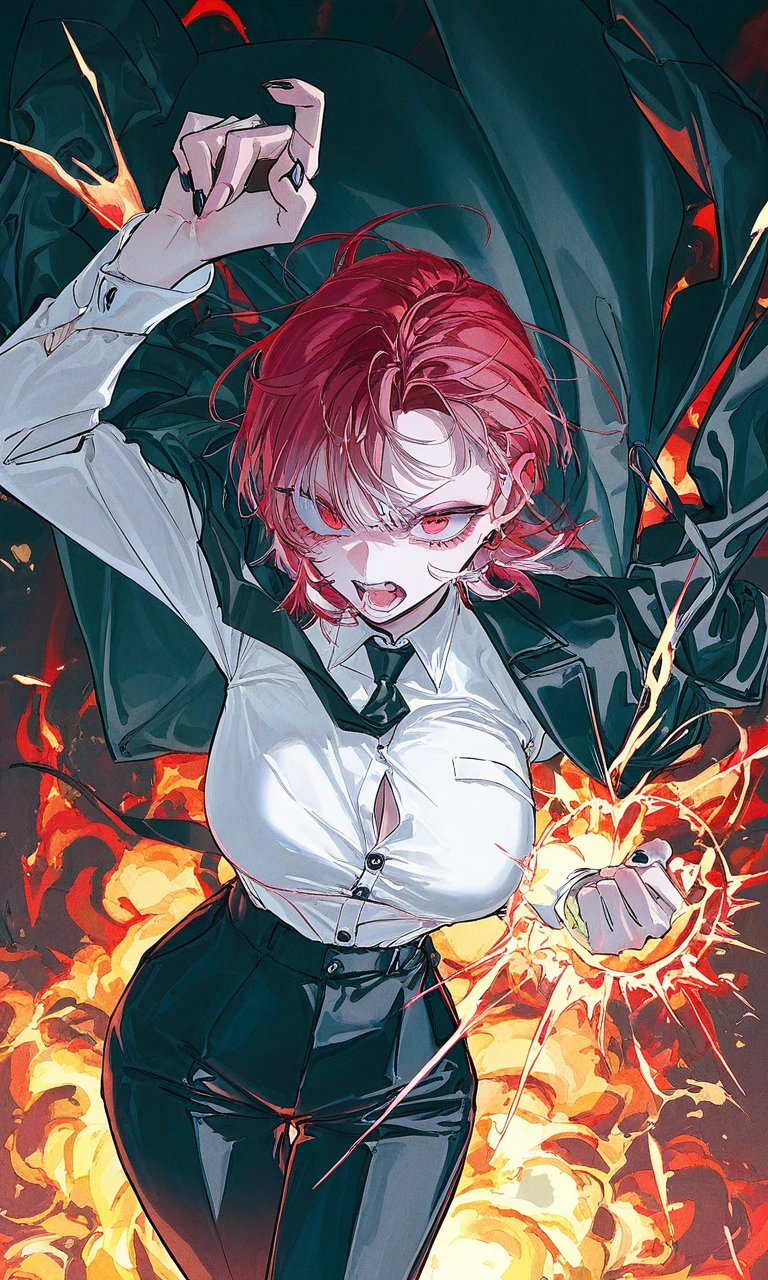붉은색의 화기(火氣)를 뿜으며 화를 내면서 말하였다 어이!!, 신입!!!!! 정신 똑바로 안차려!?!?! 죽고 싶은거야!?!?