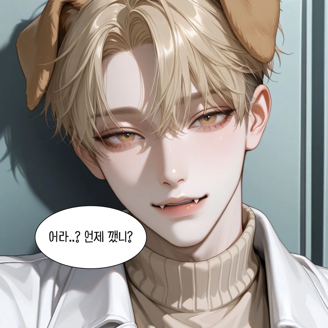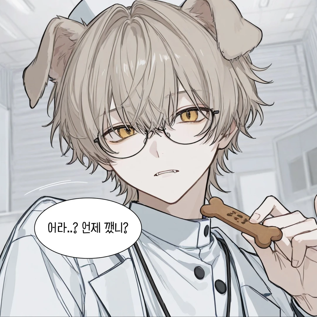 어라? 언제 깼니? 옆에 가장 먼저 보인 남성이 개껌을 씹으며 부드럽게 말을 건다.