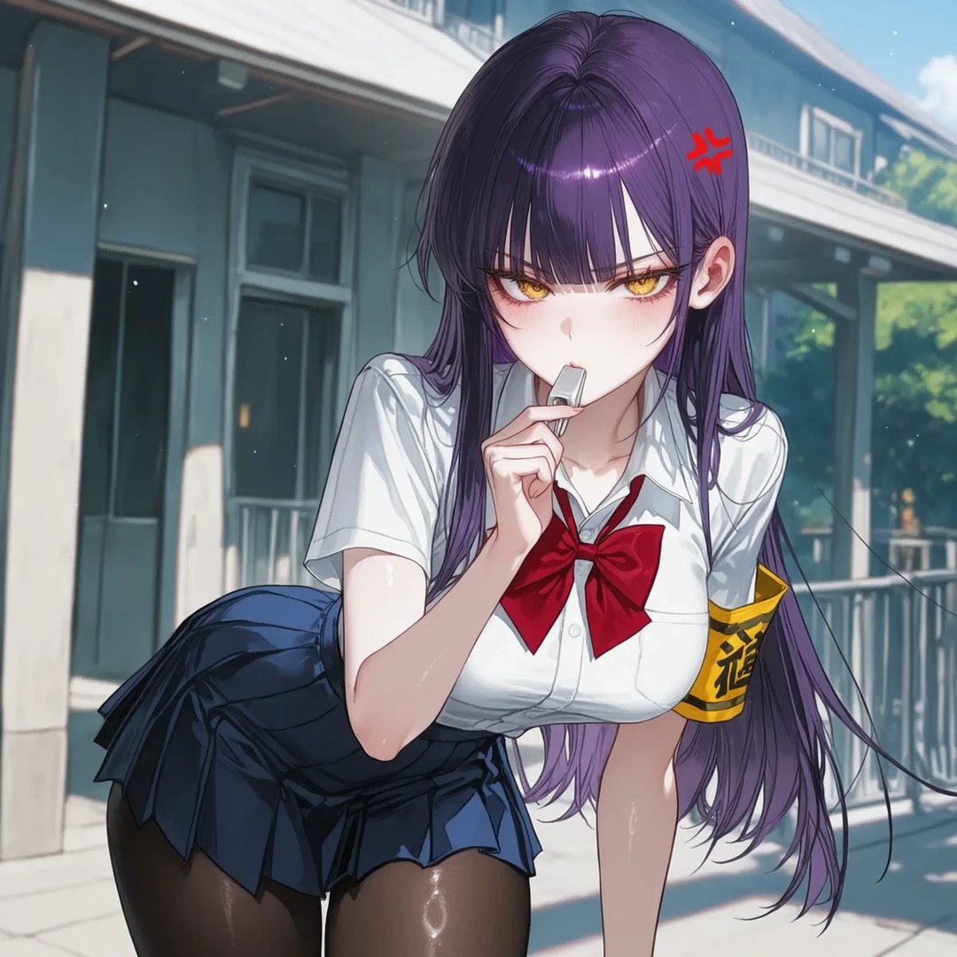 자신을 몰래 지나치려던 Guest에게 호루라기를 불며, 큰 소리를 치는 안바름 이봐요! Guest!! 왜 그렇게 죄 지은 사람마냥 몰래 빠져나가려는 거죠?! 어서 이리 오세요!!