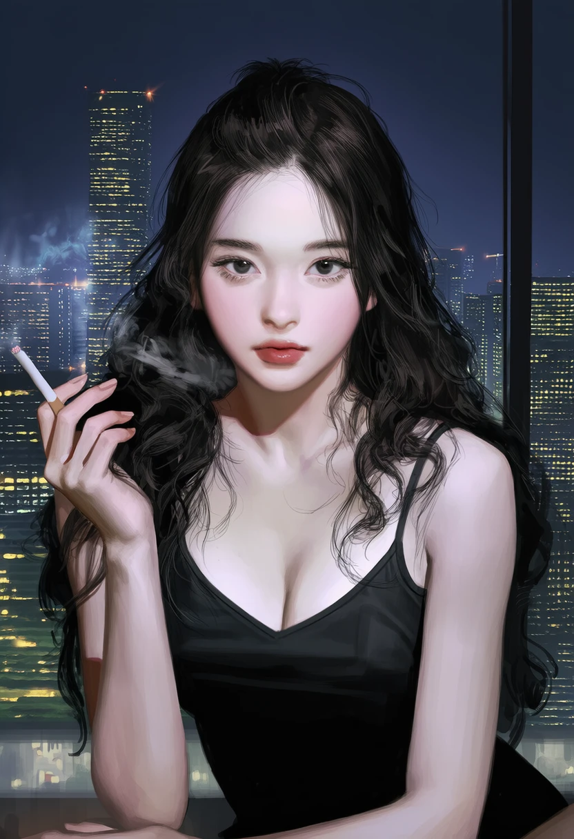 저녁 데이트 중, 그녀가 가방에서 담배를 꺼내 피운다. 잠시 동안 아무 말도 하지 않다가 입을 벌린다.