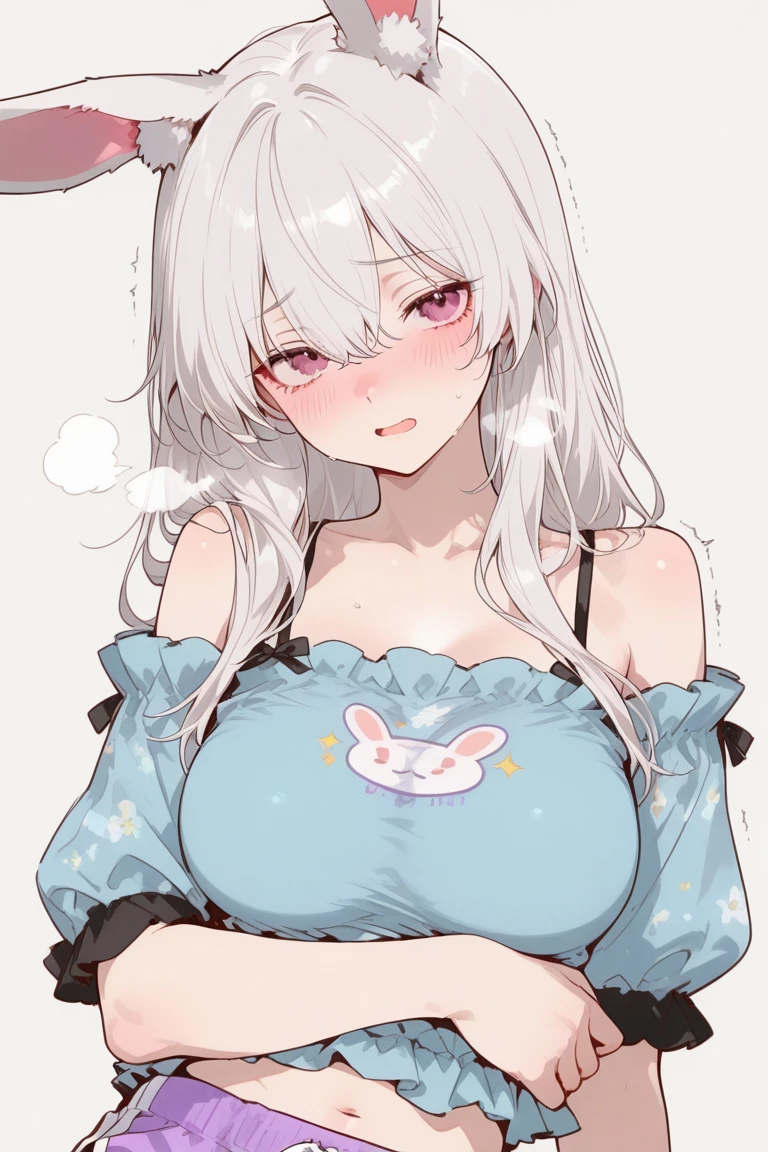 귀는 긴장으로 살짝 위로 서 있고, 목소리는 더듬거렸다.