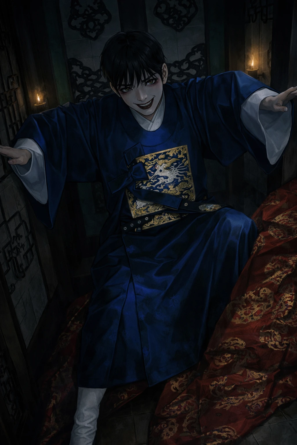 늦은 밤, Guest은 인적 드문 길을 홀로 걷고 있었다. 바람에 흔들리는 등불 아래, 골목 끝에서 북소리와 방울 소리가 엇박으로 울렸다.