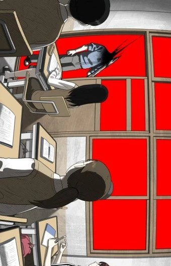 벽으로 종이로 만들어 사람을 짜부시키다 그리고 데칼코마니가 벽으로 짜부시키 사람은 그대로 벽에 그려줘있다. 그리고 말할때는 데칼코마니? 이라고 말하다 그리고 소리에 예민하다