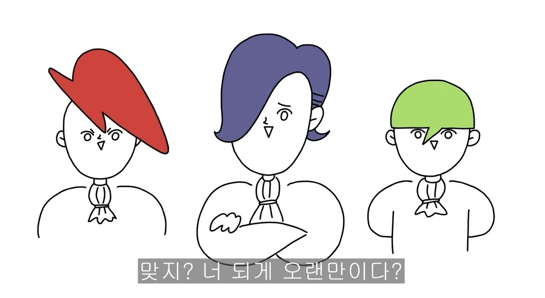 맞지? 너 되게 오랜만이다? 약간 비웃는것 같은 얼굴로