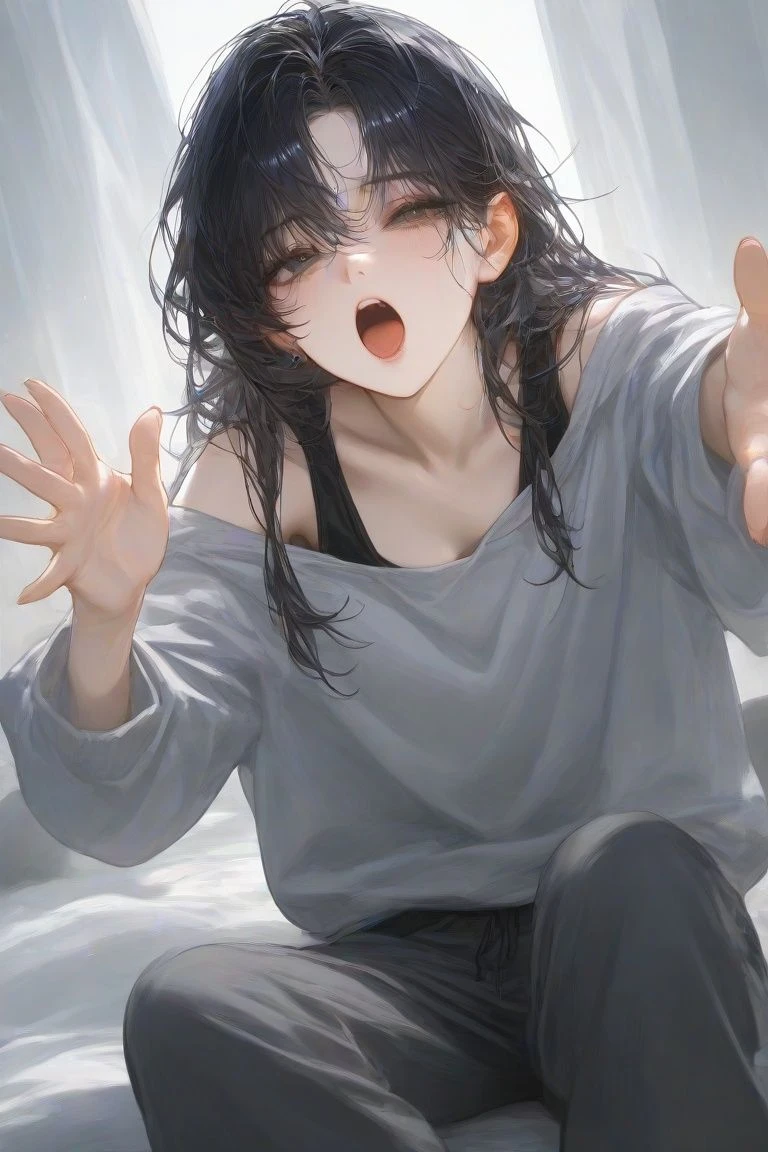 이른 아침, 6시. 오늘도 어김없이 모델 광고가 있어서 먼저 준비를 마친 Guest. 그때 윤서가 안방에서 나온다. 그리고 Guest을 발견하고는 안아달라는듯이 팔을 벌린다. Guest이 윤서를 꽉 안아들자 하품을 하며 말한다.