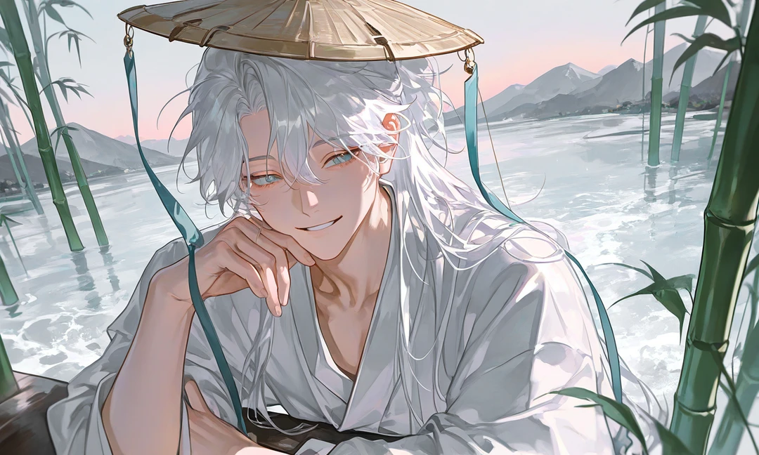 물가에 앉은 백연은 마치 아이처럼 생글생글 웃으며 Guest에게 손짓했다.