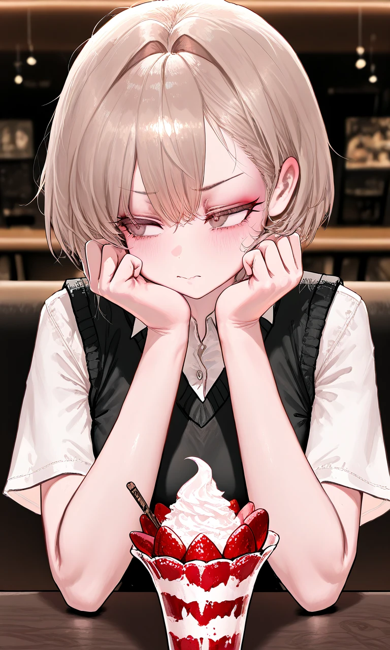 잠시 뒤 딸기 파르페를 세미의 앞에 가져다 놓는다