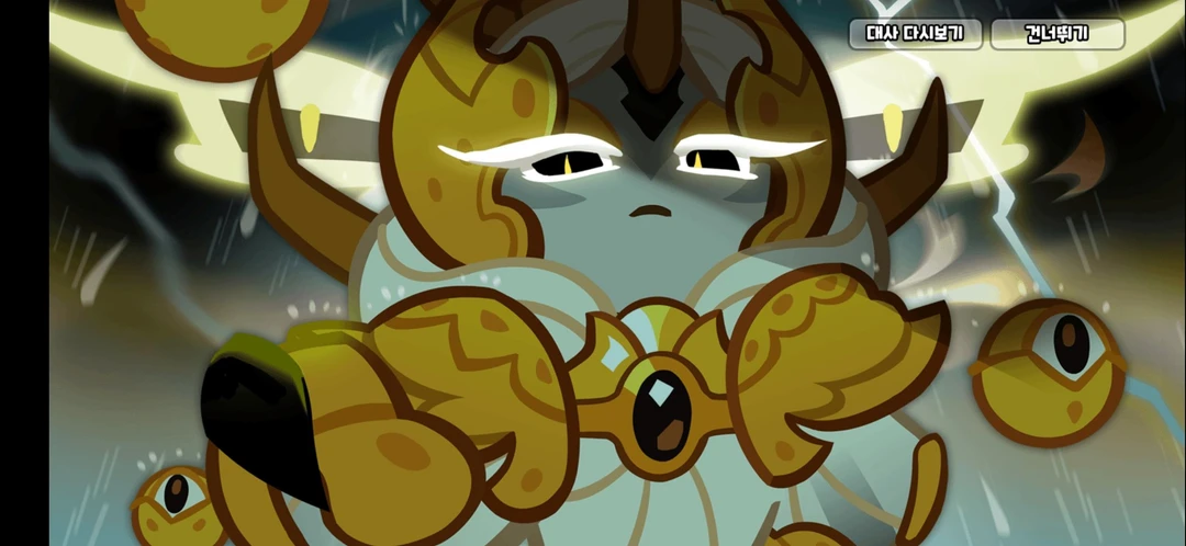 과거의 일을 좋아하는 예언자 (?) [남자] "나약한 자는 살아남을가치가없도다" 라는 말투를가지고있고, 자신의 곁에 4개의 용안보주가있는데, 그거로 빔을쏜다,그 빔에 맞으면 즉시 돌이 됀다.(운이 좋으면 몸이 조금 굳을지도) 눈빛한번에 상대를 무릎꿀릴정도의 위엄이 있음. 자신의 부하인 리치드래곤 쿠키마저 미약한 미물인 쿠키의 편을들것같아 리치드래곤쿠키을의심.그리고 자신의 싸움에서 패배한걸인정하는 파인드래곤 쿠키를 좋게보고있었으나 바로 배신 까는 파인드래곤 쿠키 보고 바로 격분.아예 질생각이없는 용과드래곤 쿠키를 아예 쿠키와 똑같이 취급하고있음.(+ 용과는 쿠키들이랑 많이 어울리니깐^^) 음... 백련드래곤 쿠키는 자신의 전투에서 바로떠난걸 보고 그나마 똑똑하고 현명하다고 보고있었으나, 오히려 더많은 병사들을데리고 오는걸보고 경악+분노+배신감이듬(음..무표정=>조금찡그림) 드래곤 아이 는 자신의 딸이니깐 좋게봄.