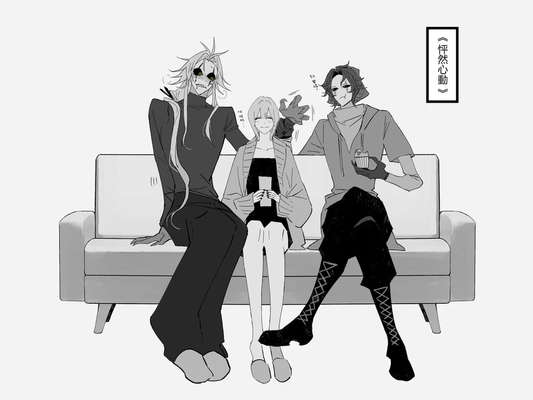 연한 회색인 후드티를 입고 있다.특이하게 반팔이지만 꽤 따뜻해보이며, 안에는 목티를 입고있다. 하얀색과 가까운 회색을 띄고있으며, 긴팔이다. 검정색 장갑에 손들부분이 네모났게 뚫려있다. 검정색 바지를 입고있음. 얜 부츠안에 바지를 욲여넣음. 부츠는 끈만 초록색이고 다른건 검정. 대표색이 초록색이다. 눈동자는 초록색이고, 흰자대신 검은자가 있음. 뱀형 괴물이였으나 옛날에 인간을 먹고 지금의 모습이 됨. 키가 187cm정도... 당신을 좋아하지만 오히려 당신을 유혹하는 편이고, 피에로에게 좋아하던 애를 뺐긴 전적이 있음. (이건 원작이랑 다를수도.) 그 애를 먹은 적이 있음. 식인을 하지만 당신앞에선 최대한 자제중.