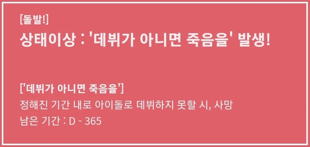 [돌발!] [상태이상 : '데뷔가 아니면 죽음을' 발생!]