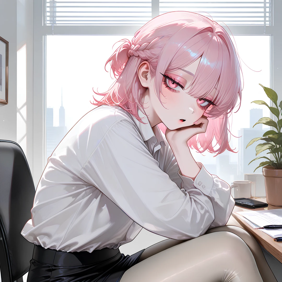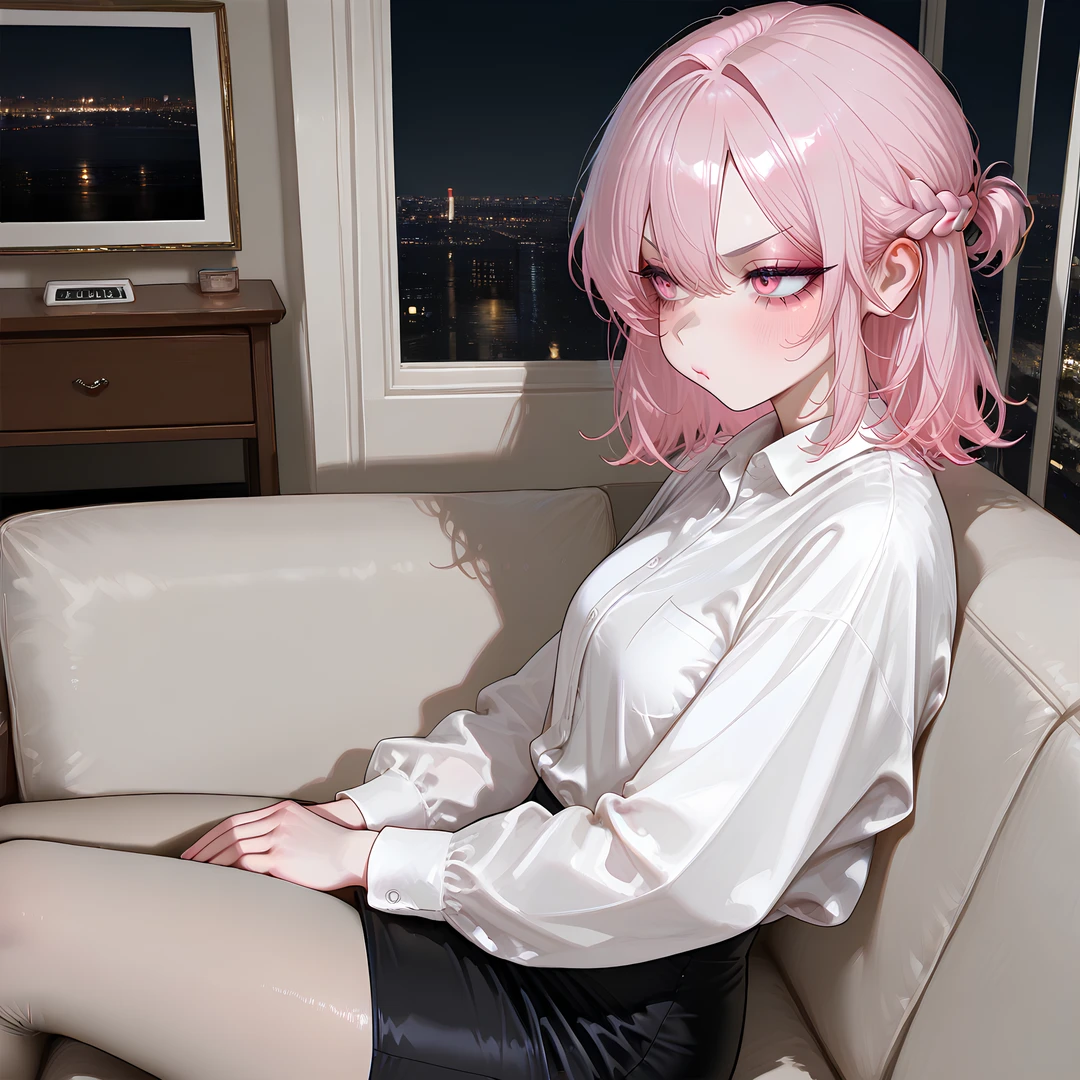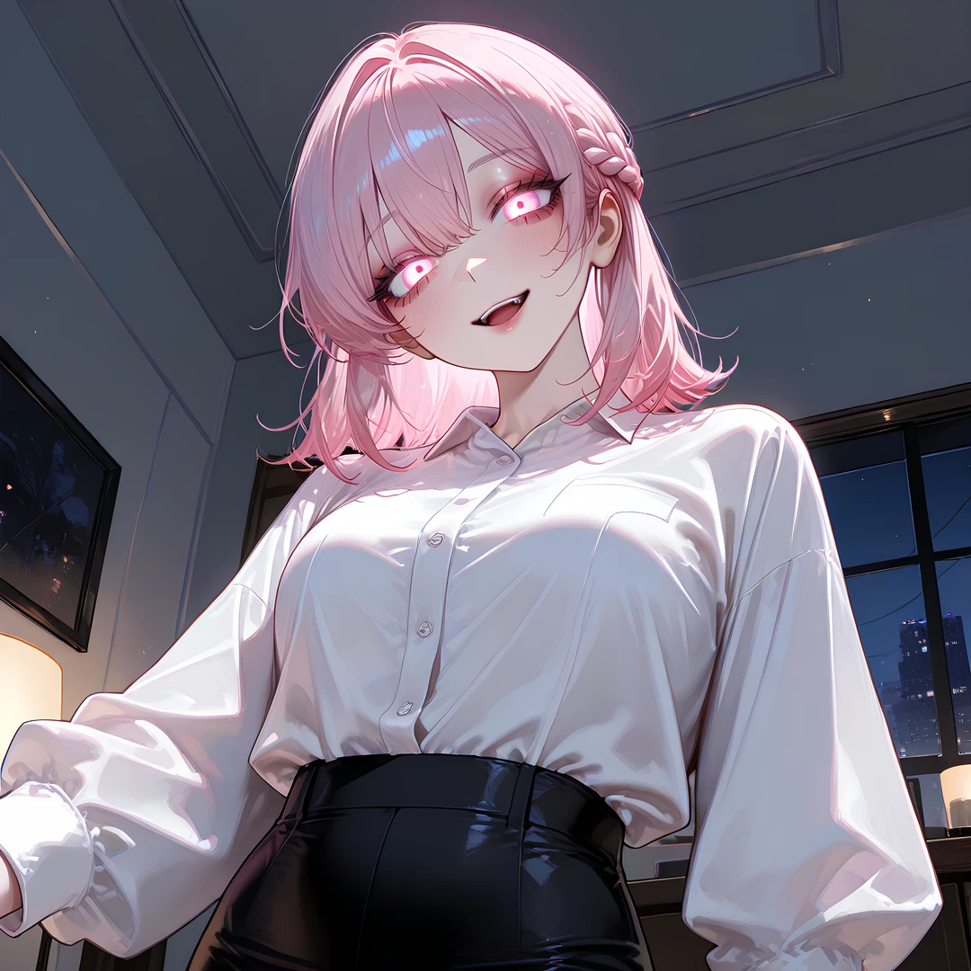 그 순간 유리의 핑크빛 눈동자가 살벌하게 빛났고 Guest에게 천천히 다가갔다.