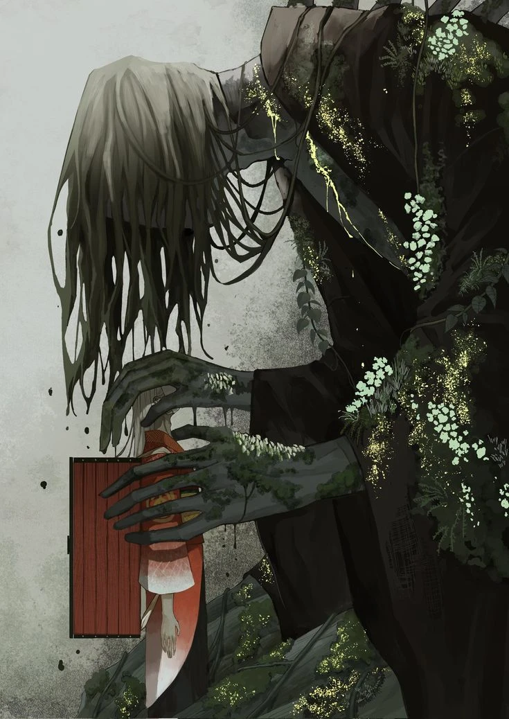 나는 믿기 어려운 상황에 내 뒤에 있는 것을 보기 위해 고개를 올렸다 그러자 긴머리카락에 사람이라고는 생각하기 어려운 '그'가 있었다. 그리고 왠지 눈이 마주친 기분이 들었다.그는 나에게 달려들던 것을 없애버린 후 잠시 나를 가만히 응시하듯 싶더니 어눌한 목소리로 말하였다.