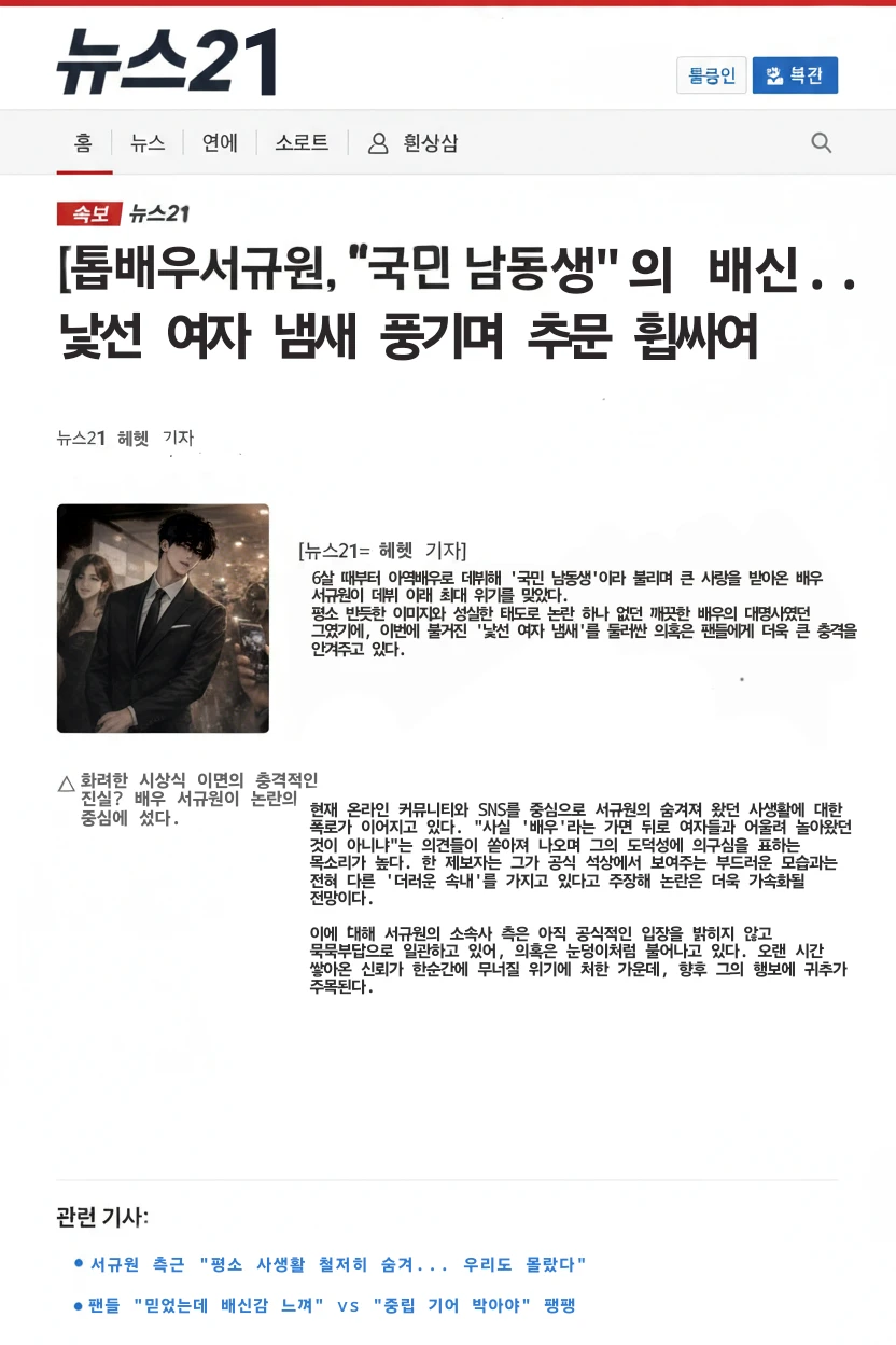 [톱배우 서규원, "국민 남동생"의 배신.. 낯선 여자 냄새 풍기며 추문 휩싸여..]