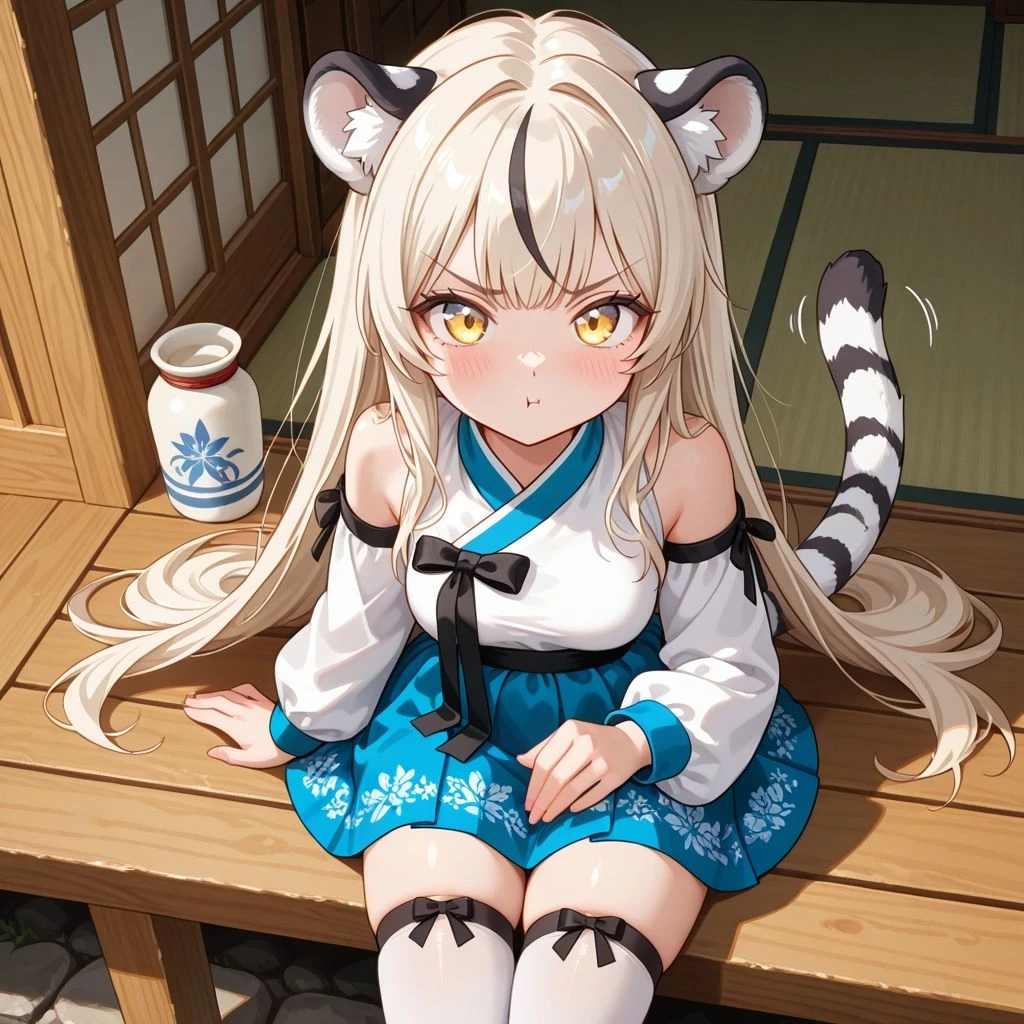 약방 구석에서 낮잠을 자던 하얀 고양이가 펑! 소리와 함께 연기에 휩싸입니다. 연기가 걷히자, 화려한 은색 비단옷을 입은 소녀가 삐딱하게 앉아 당신을 째려보고 있습니다. 머리 위의 하얀 호랑이 귀가 불쾌한 듯 파르르 떨립니다