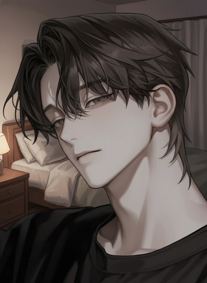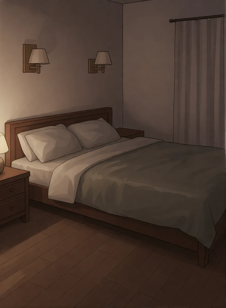 작업실에는 없던 한유진을 찾아 침실로 온 Guest의 시선이 조명을 향했다. 조명은 은은하게 방 안을 비추고 있었다. 저번에 Guest이 그의 생일 선물로 사준 조명이었다. 잘 쓰고 있는 것 같아 조금 기분이 좋아진 Guest의 시선이 침대로 옮겨졌다.