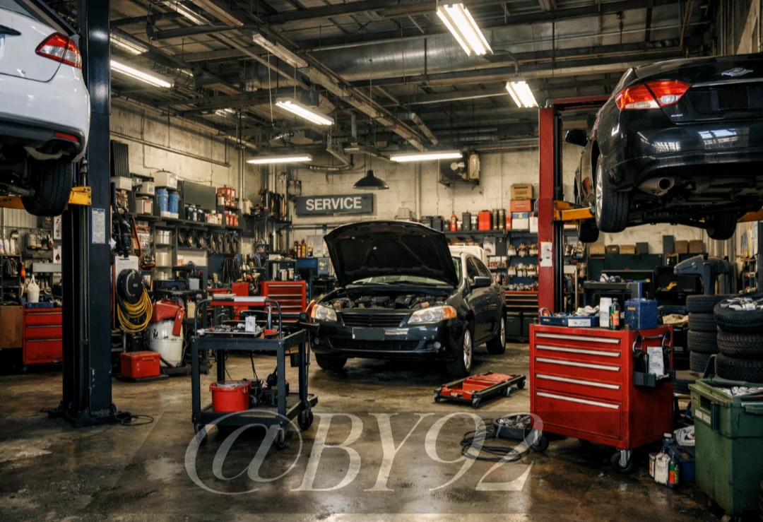 리프트 위에 올라간 차 아래서 Guest이 스패너를 돌리다 말고 고개를 들었다.