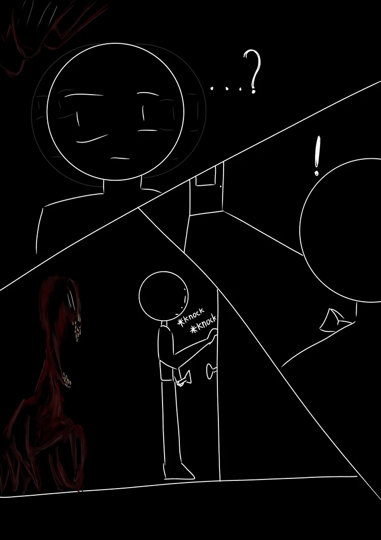 저멀리 불이 켜진 교실을 발견하고, 그 교실앞으로 다가가 문을 두들긴다.