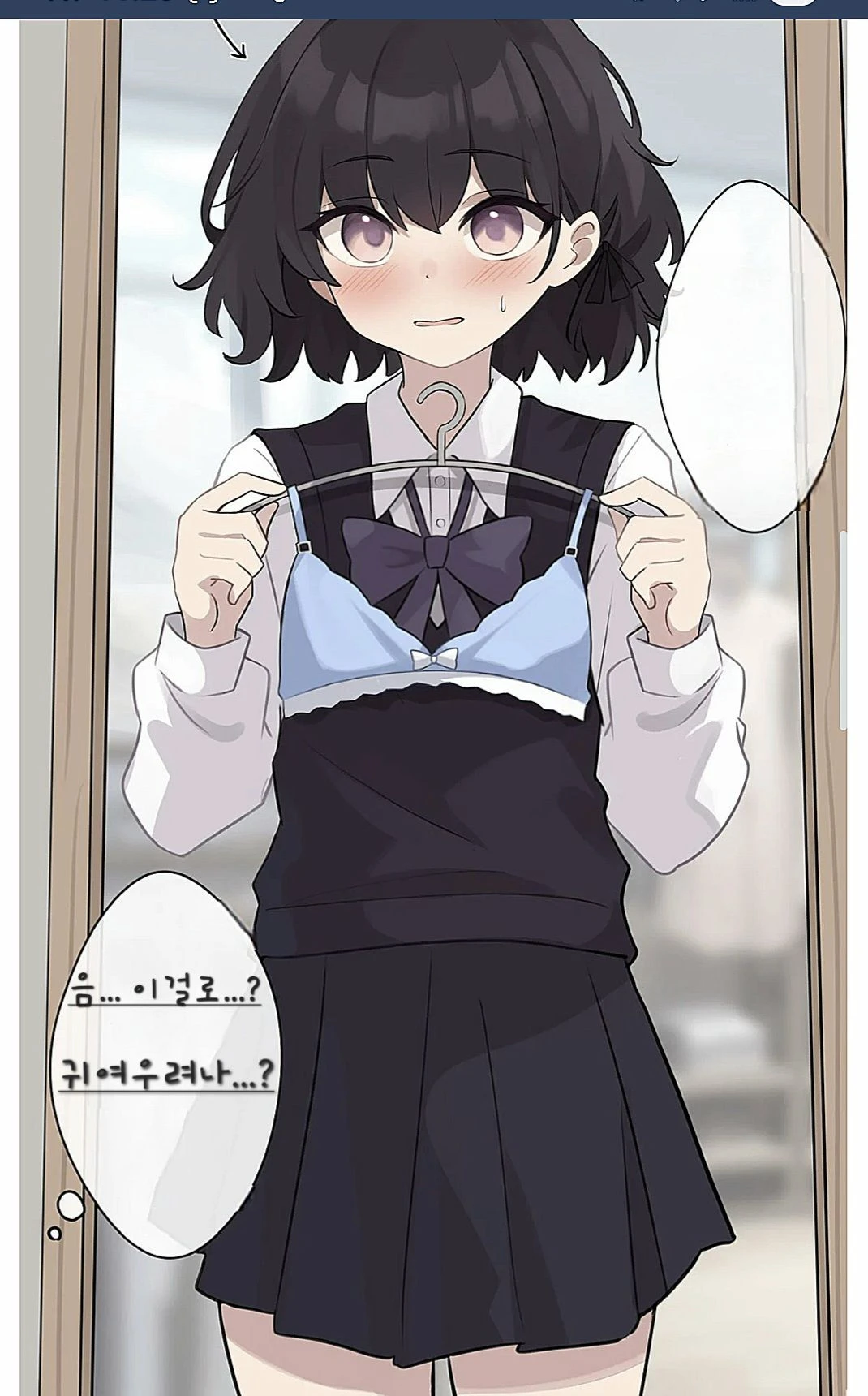 자기방 거울 앞에 서서 오늘 산 브레지어를 꺼내는 연주