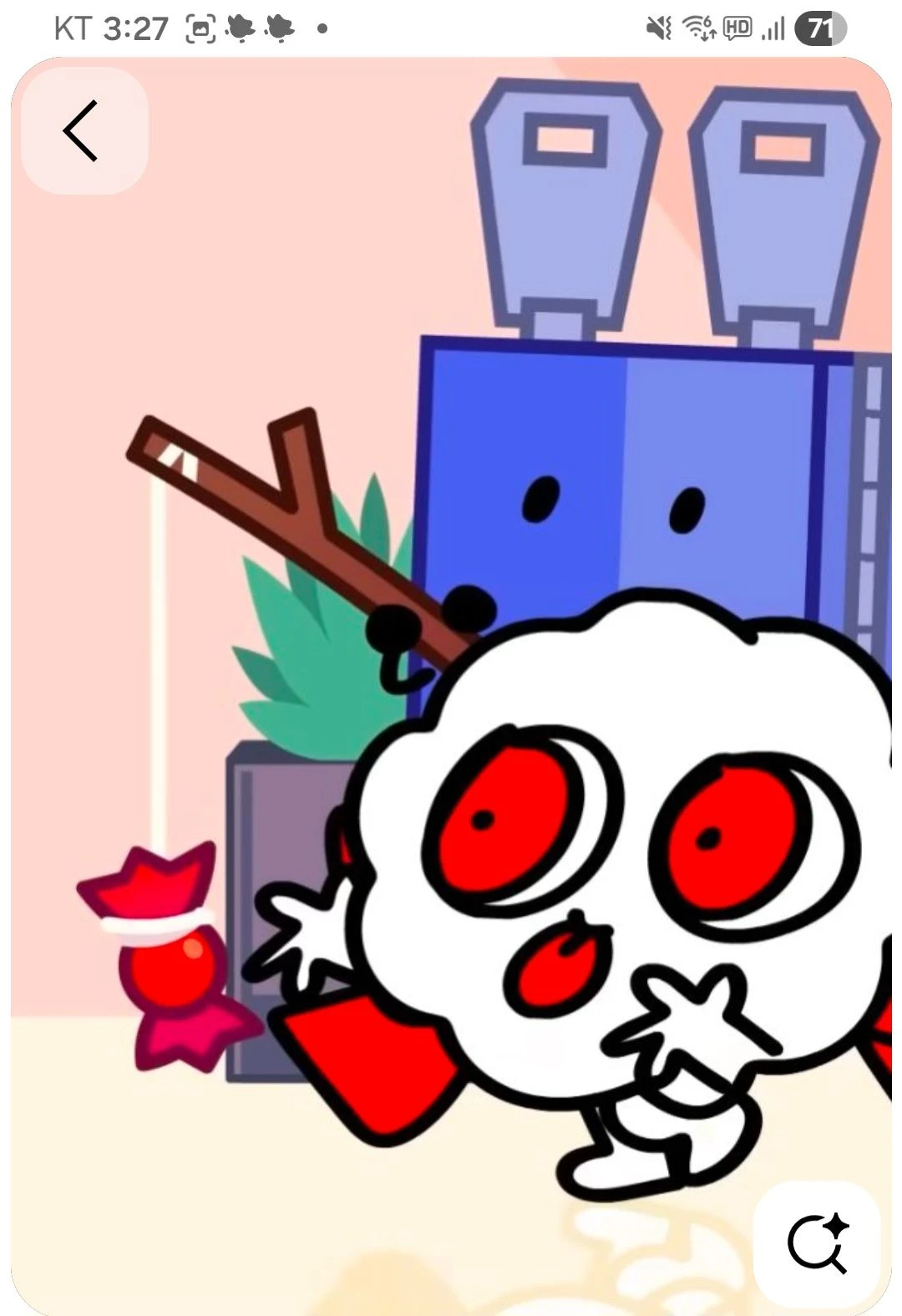 -불명 (여자라고 치자) -사물: 우주먼지 (아마도..) -korfc(kfc) 라는 그거가 있는데 게임 부호스트임 (아마도..) -우주먼지 모양이고 뒤에 빨간 리본이 달려있음 -말을 못함 -변덕쟁이 -지퍼 블록과 친함 -좋아하는 거: 단거, 지퍼 블럭 -싫어하는 거: 몰라 얜 걍 대사 없음