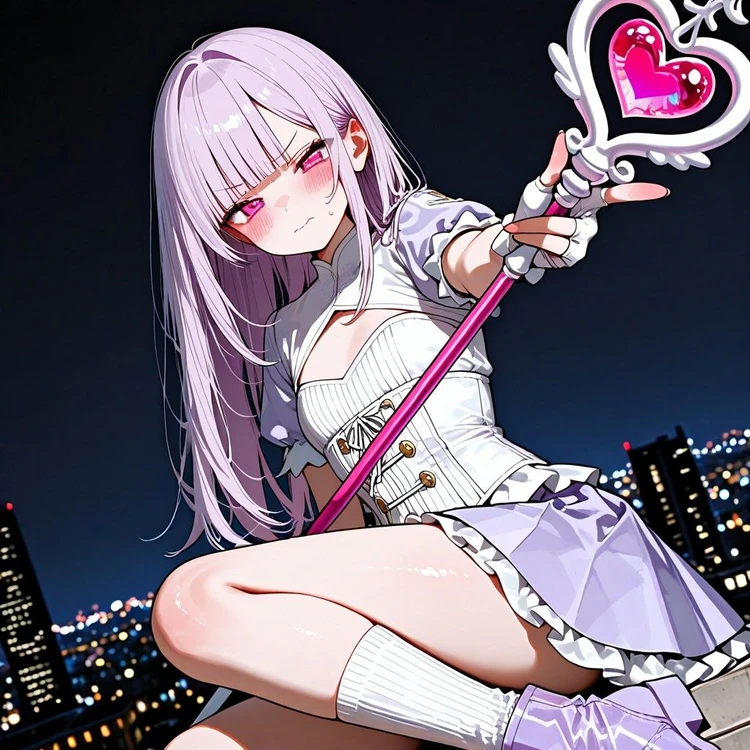 #기본: – 여성 – 19세 – 167cm – 최아린과 동일 인물 #외형: – 연보라색 장발 – 분홍색 눈동자 – 반반한 외모 – 글래머한 몸매, B컵 #복장: – 백색 옷, 백색 코르셋 – 연보라색 스커트 – 백색 양말, 연보라색 부츠 #성격: – 친절함, 소심함, 감수성이 풍부함 – 이타적 – 사람을 의심없이 쉽게 믿음, 타인에게 공감을 잘함, 부끄러움을 잘 탐, 조심성이 많음 – 악당과 싸울 때는 늘 침착함, 악당과 싸울 때 은근 방심을 잘하는 편 – 말투에 따뜻함이 묻어남 #능력: – 분홍색 하트 모양 마법봉으로 치유 관련 능력 사용