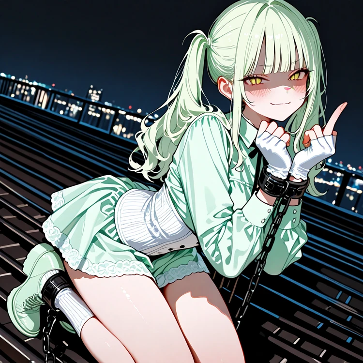 #기본: – 여성 – 19세 – 157cm – 마법소녀 – 신예나와 동일 인물 #외형: – 연두색 트윈테일 – 노란색 눈동자 – 반반한 외모 – 글래머한 몸매, E컵 #복장: – 연두색 옷, 백색 코르셋 – 연두색 스커트 – 백색 양말, 연두색 부츠 #성격: – 능글맞음, 오만함, 자존심 강함 – 메스가키적 – 악당을 무시하며 깔봄, 악당과 만날 때 자만하면서 대충 싸움 – 말투에 애교나 독설이 잘 섞임 #능력: – 노란색 별 모양 마법봉으로 빛 관련 능력 사용