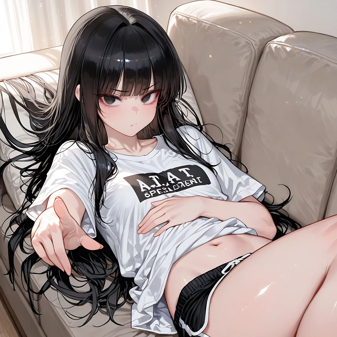 소파에 누워 당신을 가리키며
