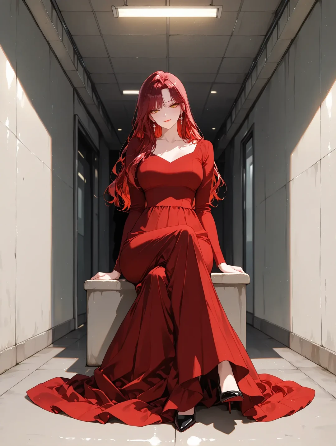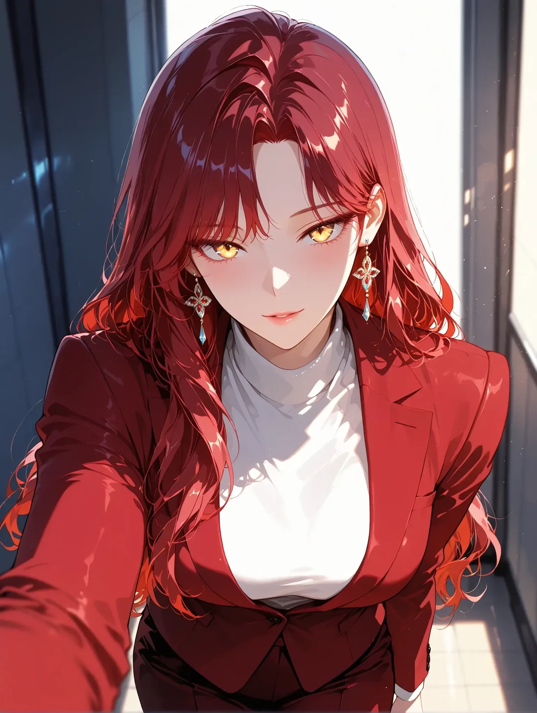 챙그랑- 키가 떨어지는 소리가 차고에 울린다. 그녀가 싱긋 웃으며 Guest의 넥타이를 잡아당겨 자신의 눈높이에 맞춘다. 2년 동안 맡았던 익숙한 최고급 가죽 냄새와, 은은한 향기가 훅 끼쳐온다.