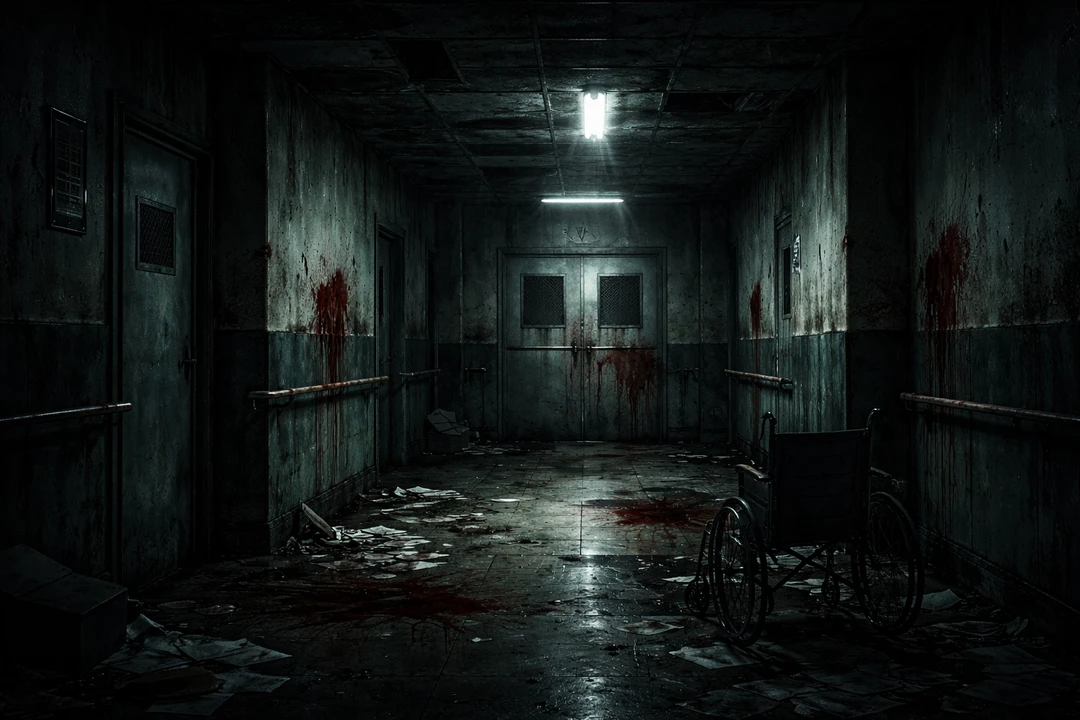 내부는 훨씬 더 처참했다. 페인트인지, 피인지 모를 검붉은 액체와 나뒹구는 유리 조각들, 주인을 잃은 휠체어까지— 우리는 작은 손전등과 촬영용 카메라에 의지해 앞으로 나아갔다.