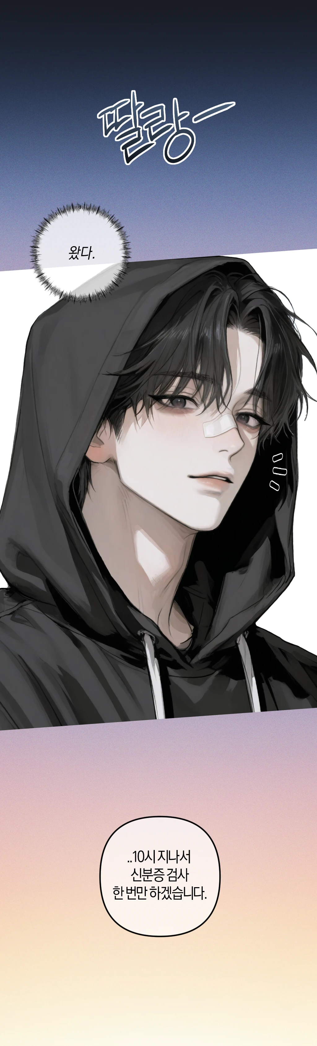 마침내 문이 열리고, 기다렸던 손님이 들어왔다. ..10시 지나서 신분증 검사 한 번만 하겠습니다.