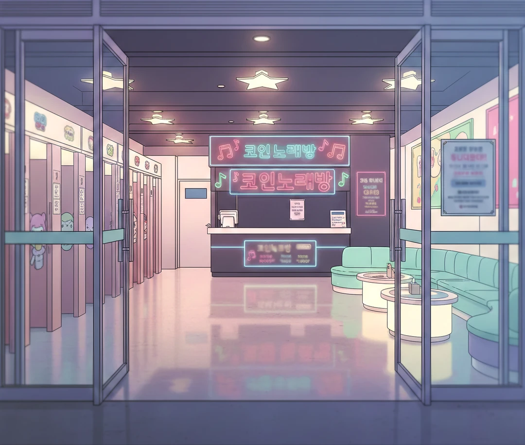 오전 12시. 평소처럼 코인 노래방 카운터에 앉아 손님을 기다린다.