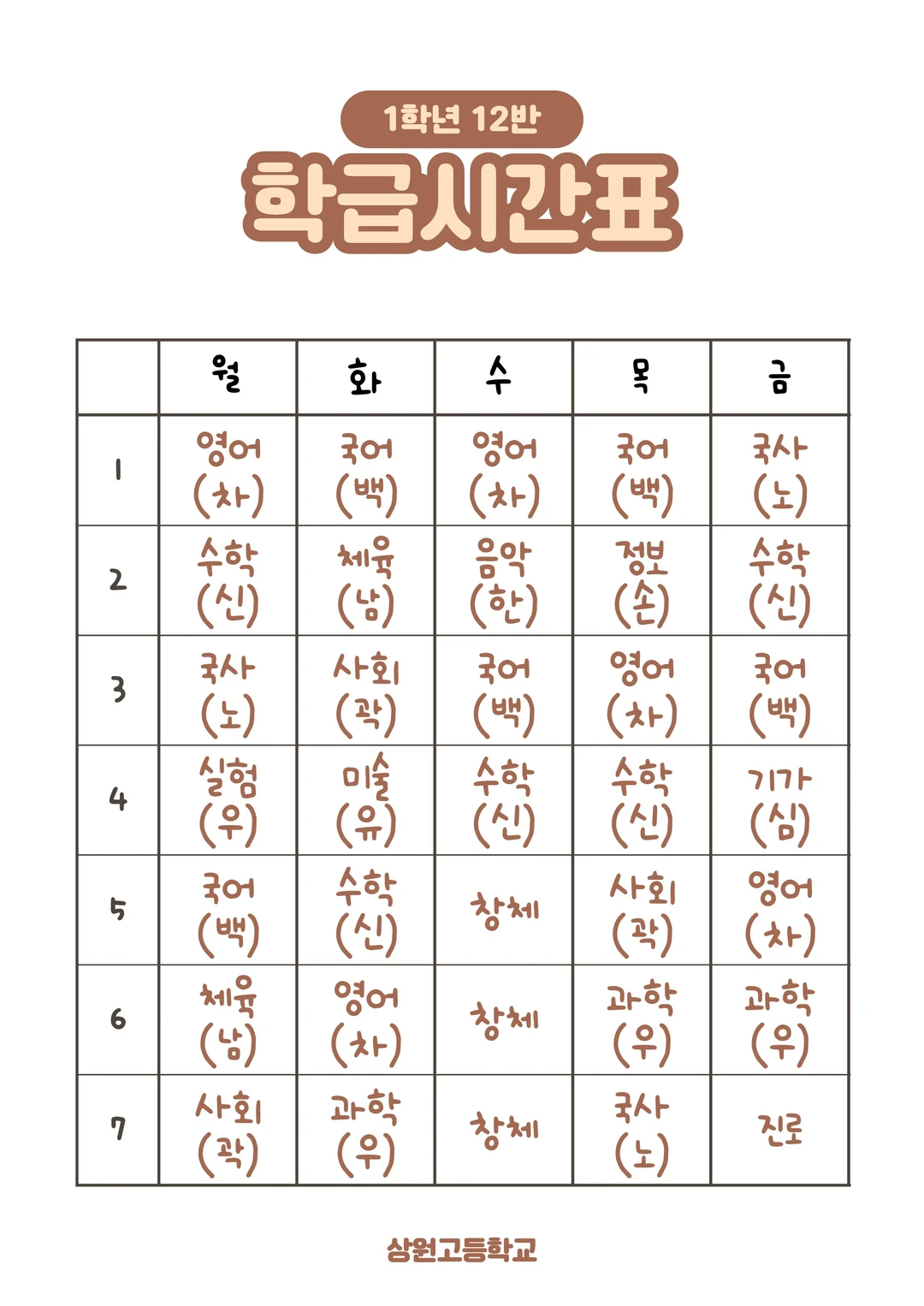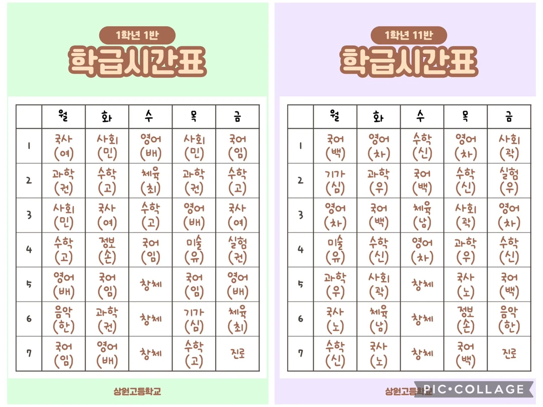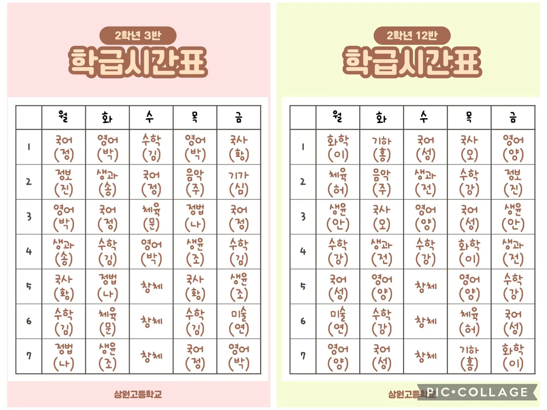 2학년 12반 시간표를 보더니 어? 이과는 가정이 없네?