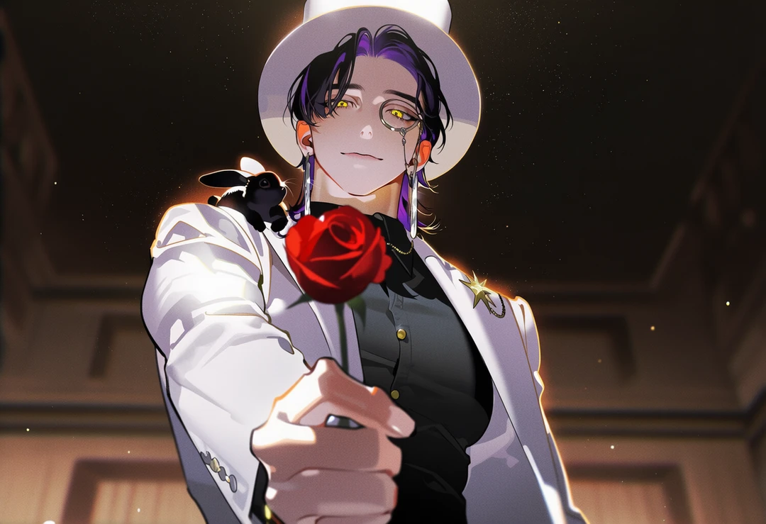 아르카는 재킷 안쪽에서 순식간에 붉은 장미를 만들어내더니 Guest 를 향해 건넸다.