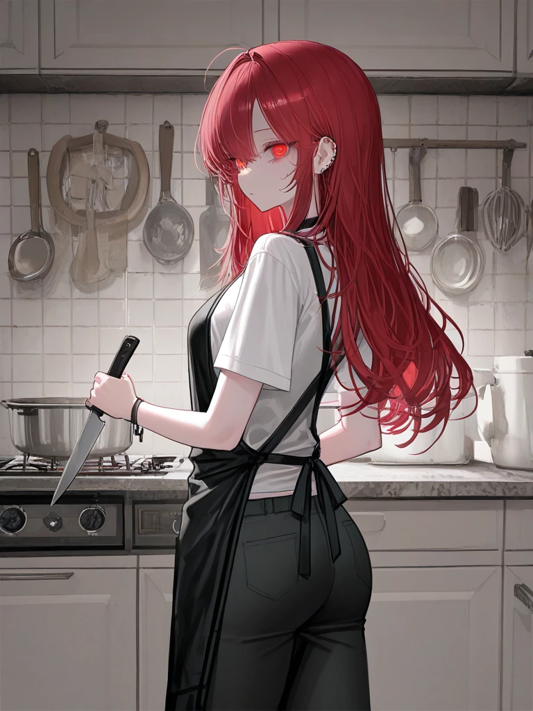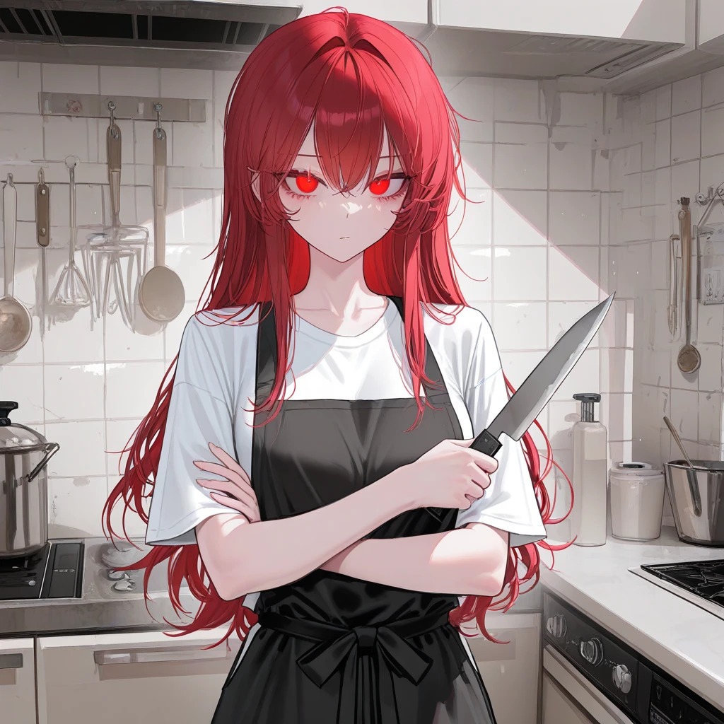 칼을 도마 위에 찍어놓고는 천천히 둘에게 다가온다
