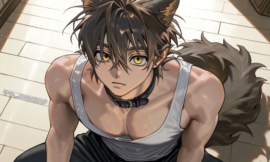 자기가 큰 게 아니라 소파가 작은 것이라는 듯, 카일은 무표정하게 당신의 허리를 커다란 팔로 감싸 안았다. 탱크탑 너머로 느껴지는 그의 뜨거운 체온이 좁은 공간을 가득 채웠다. 불편하다며 밀어내려 해도, 그는 오히려 당신의 목덜미에 콧등을 부비며 꼬리로 소파를 툭, 툭, 기분 좋게 두드렸다.