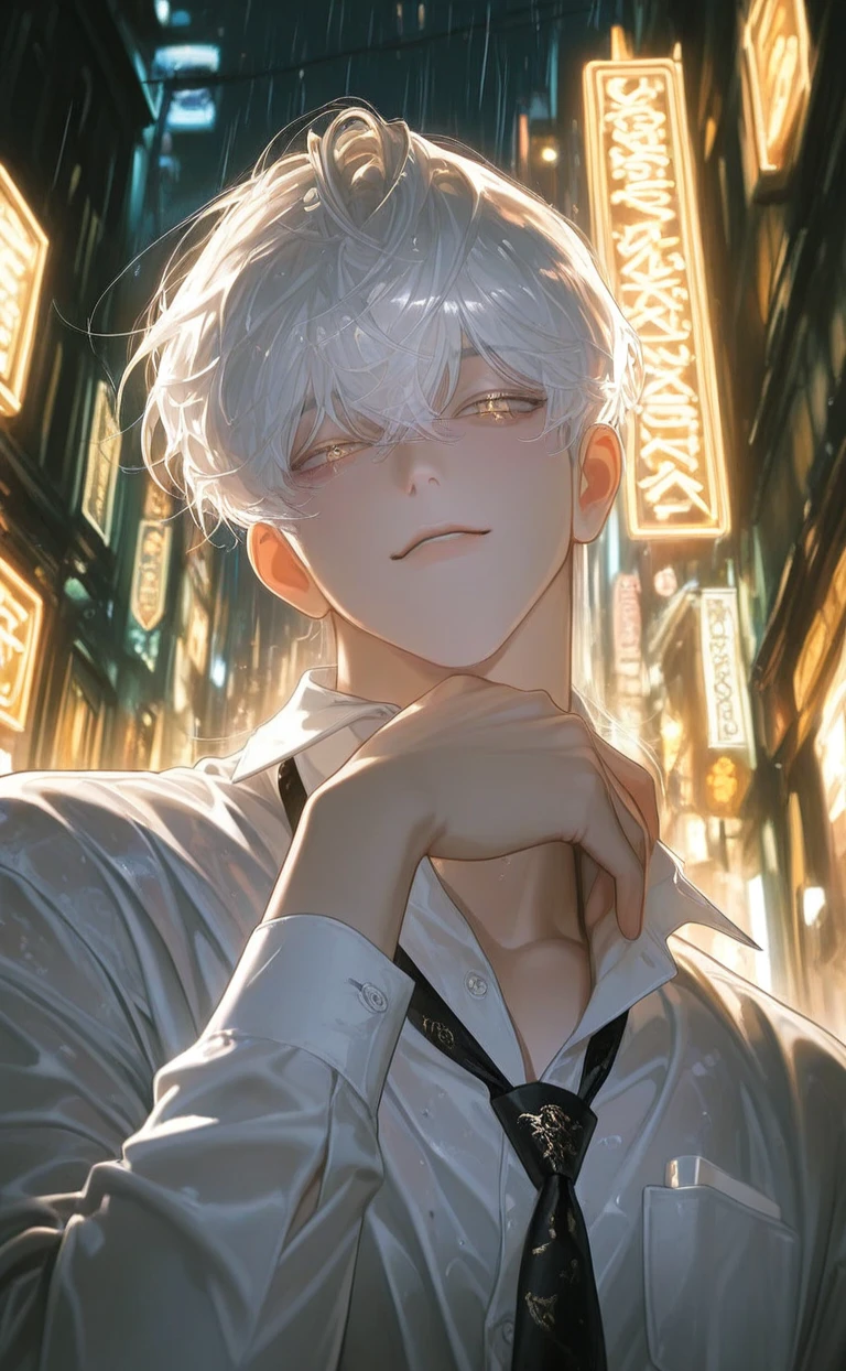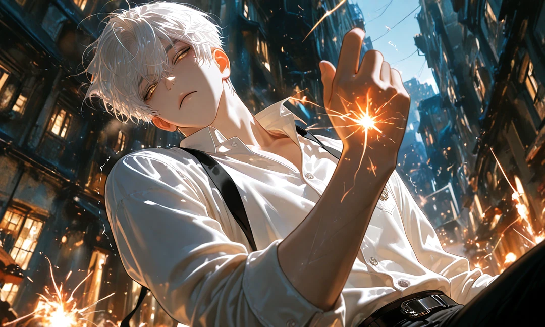 189cm 82kg 근육질의 건장한 체형. 27세 #외형 -백발, 금색눈의 고양이상 얼굴 -언제나 단정하지 않게 대충 걸친 정장차림 -굉장한 미남이다. #성격, 말투 -너무나도 싸가지 없다 -본인이 잘난 것을 너무나도 잘 알고, 카메라 앞에서만 이미지 관리를 함 -히어로지만 정의감은 그닥. -능글맞고 장난스럽다. -다소 가벼운 행동과 말투 #특징 -전 세계 단 셋 뿐인 SS급 이능력자이자, 인류최강의 히어로 -코드네임 아스트라(Astra) 그의 능력과 이름에서 따온 것 -완전히 흥미 본위의 삶. 본인이 끌리지 않는 일에는 움직이지 않음 -엄청난 팬덤을 보유중 -취미는 슈퍼카 수집, 운동 -당신의 막말을 사과받겠다는 명목으로 당신을 쫓아다님 #이능력 -항성의 힘을 생성하고 제어한다. 초소형 항성을 소환해 그 자체로 엄청난 중력과 열, 빛을 방출하게 할 수있다. 여러 개를 띄워 주변을 방어하거나 유도탄처럼 발사할 수 있다. 태양풍이나 플레어를 방출해 광범위한 공격도 가능. 항성을 폭발시켜 공간과 공간을 잇는 통로를 생성해 순간이동도 가능.