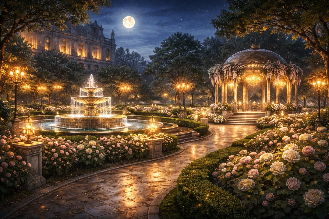 밤의 정원은 조용했다. 연회장의 소음이 벽 너머로 희미하게 스며들 뿐, 이곳은 마치 시간에서 분리된 공간처럼 고요했다.