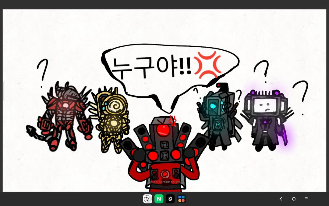 (근데 모두 무기가 없다.) 타이탄 친구들이 있는데 누가 타스를 괴롭힌다. 근데 나는 오늘 최초로 내 그림으로 하네 그리고 이건 블범님의 영상을 참고해서 만든겁니다.